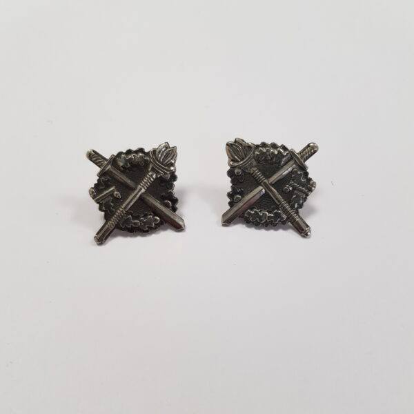 Dystynkcje wykonane metodą haftu komputerowego, na tkaninie w kolorze stalowoszarym. Przypinane na rzep do składników wyposażenia polowego i specjalnego