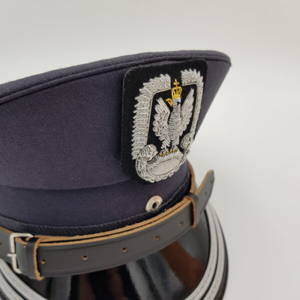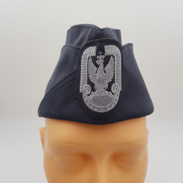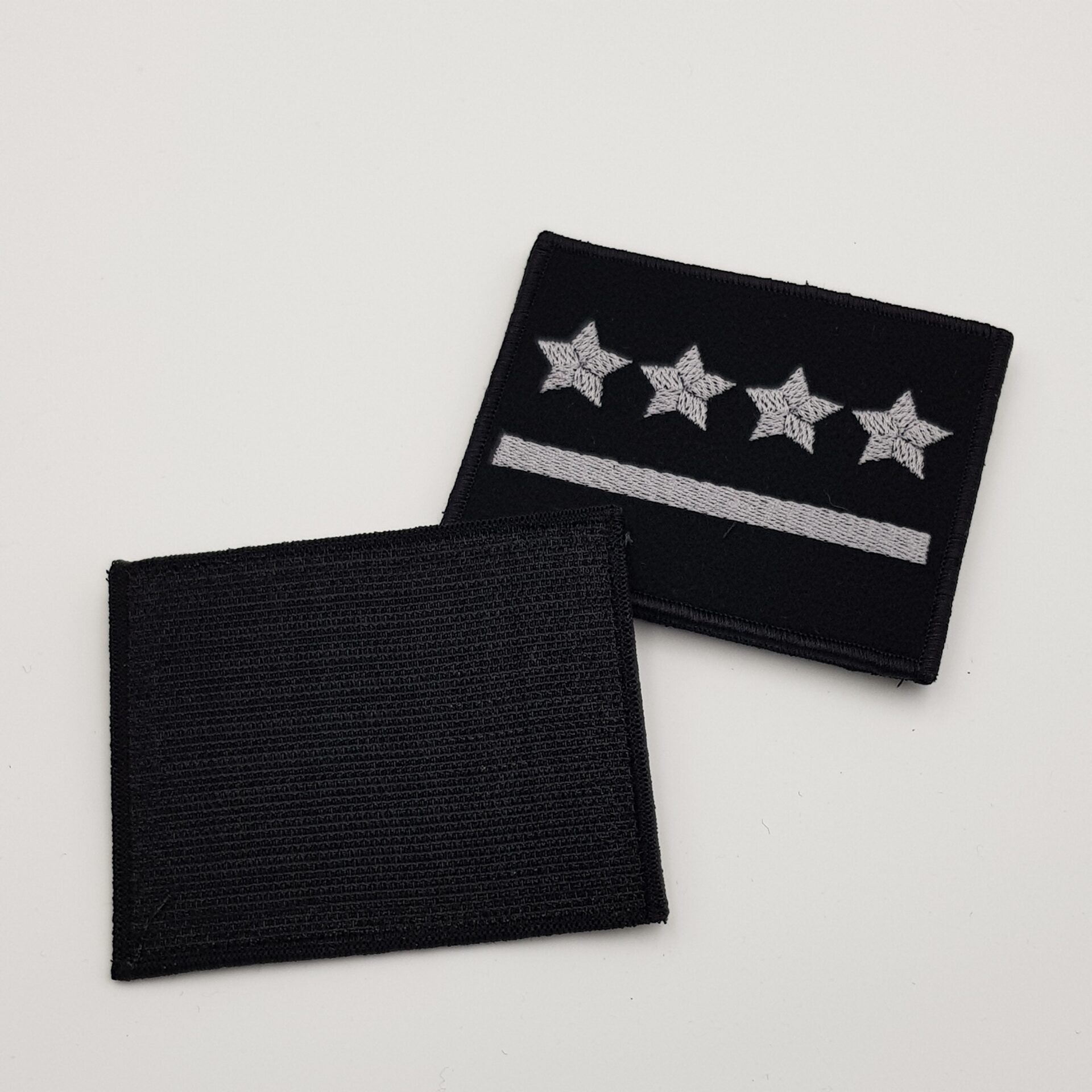 Oznaki wykonane metodą haftu komputerowego nićmi w kolorze szarym/stalowym. Obszyte nićmi w kolorze czarnym.
