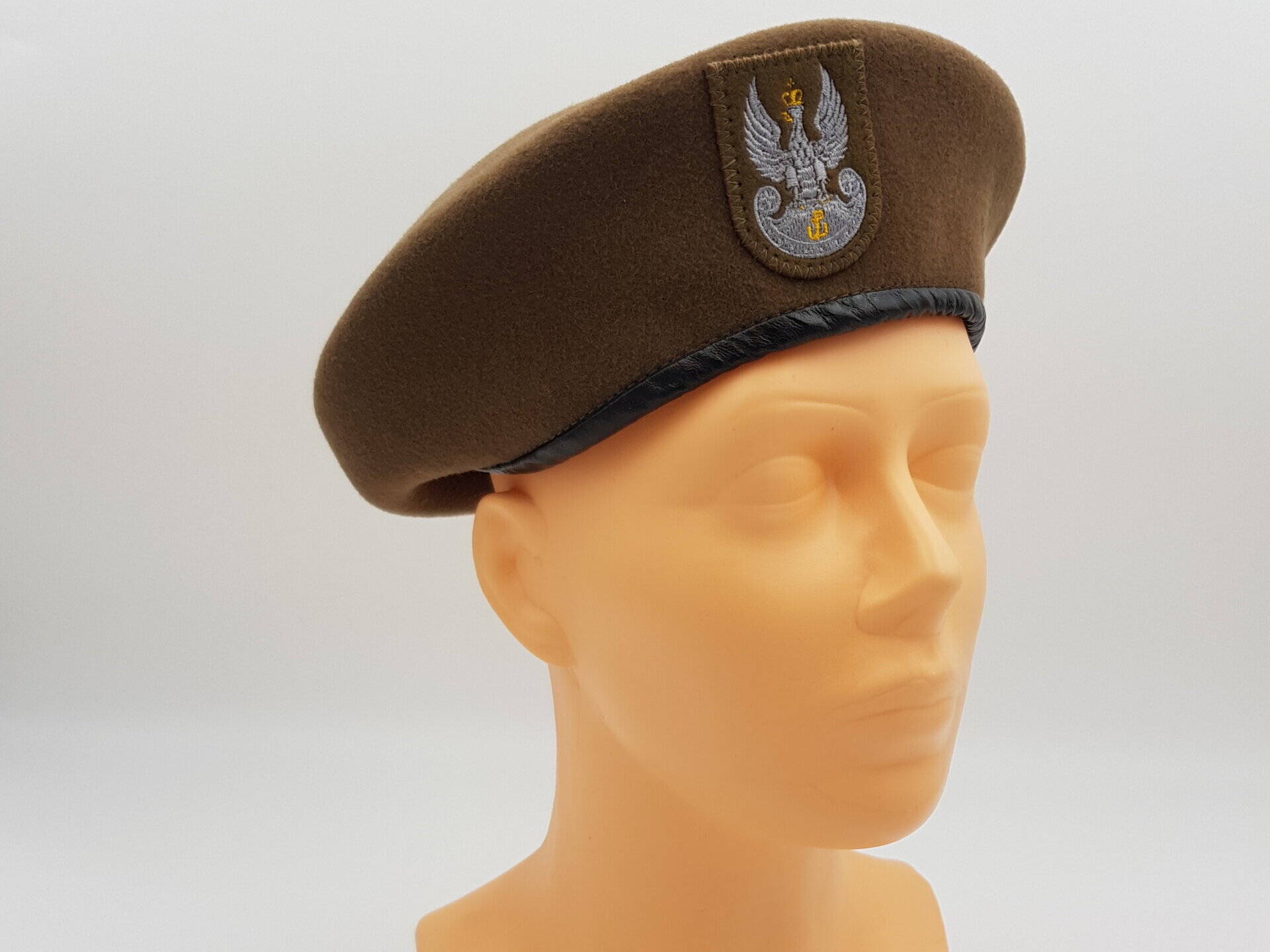 !Uwaga! Z powodu dużej ilości zamówień czas realizacji może wydłużyć się do 2 miesięcy. Berety szyte są z sukna w kolorach, w zależności od rodzaju wojsk. Na środku kwatery przedniej naszyty jest emblemat orzełka wykonany metoda haftu ręcznego — BAJORKIEM. Dostępne kolory: ciemnozielony, niebieski, bordowy, szkarłatny, czarny.