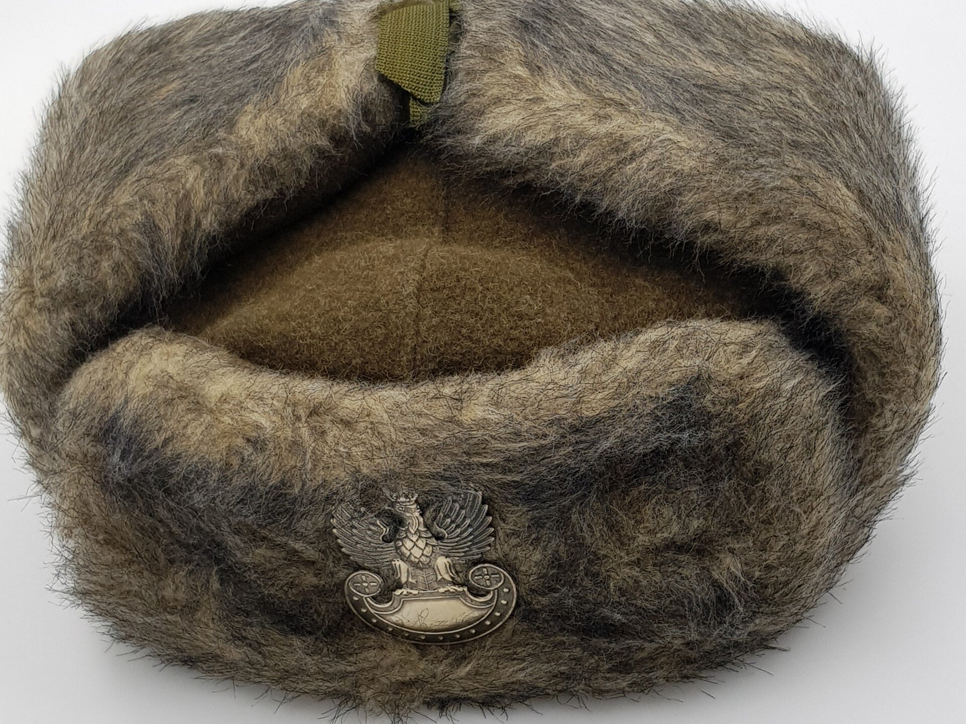 CZAPKA FUTRZANA OFICERSKA SIŁ POWIETRZNYCH Przedmiot zgodny z dokumenatcją 415/MON Czapka futrzana oficerska wykonana jest z sukna w kolorze czarnym dla kadry zawodowej wojsk lotniczych. Spód części czołowej oraz spód nauszników wykonane są z sukna. Część czołowa i zewnętrzna strona nauszników wykonane są z dzianiny futerkowej. Pośrodku części czołowej czapki zamocowany jest orzełek metalowy wojsk … Continue reading Czapka futrzana oficerska SIŁ POWIETRZNYCH wzór 415/MON