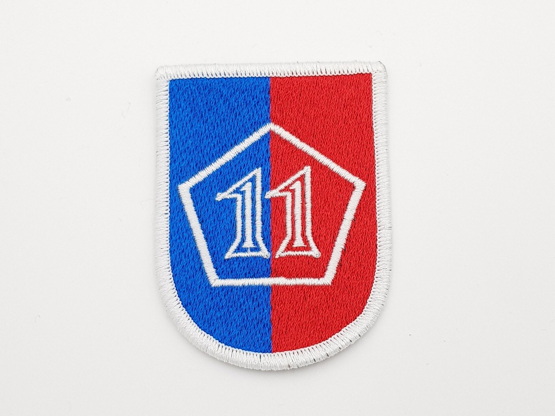 Oznaka rozpoznawcza — wyjściowa 11 Wojskowego Oddziału Gospodarczego. Wykonane metodą haftu komputerowego.