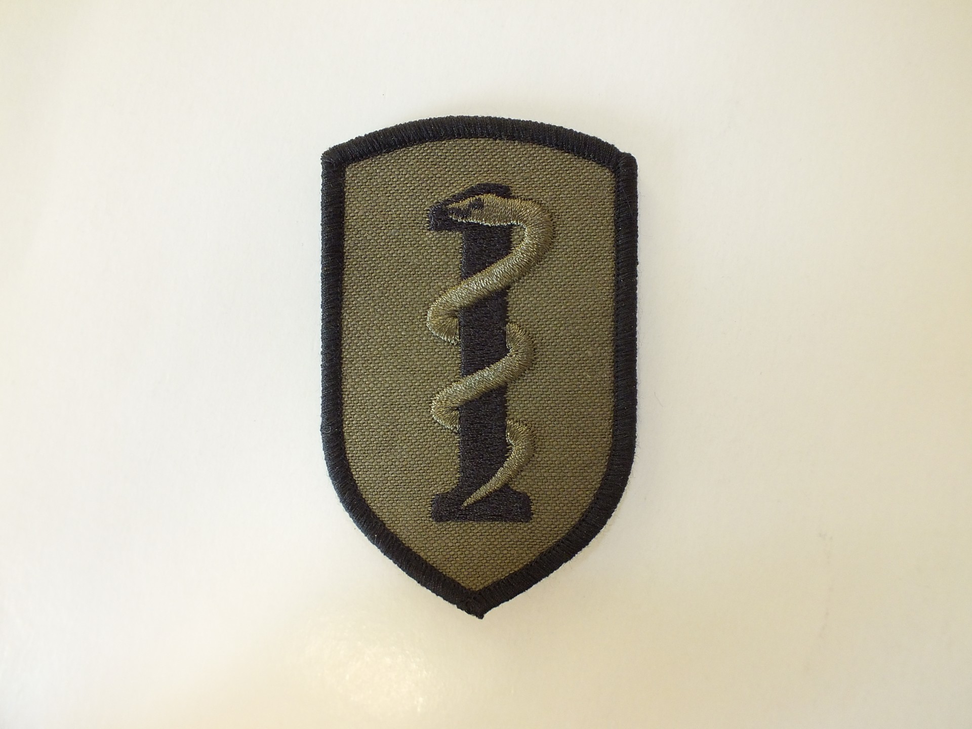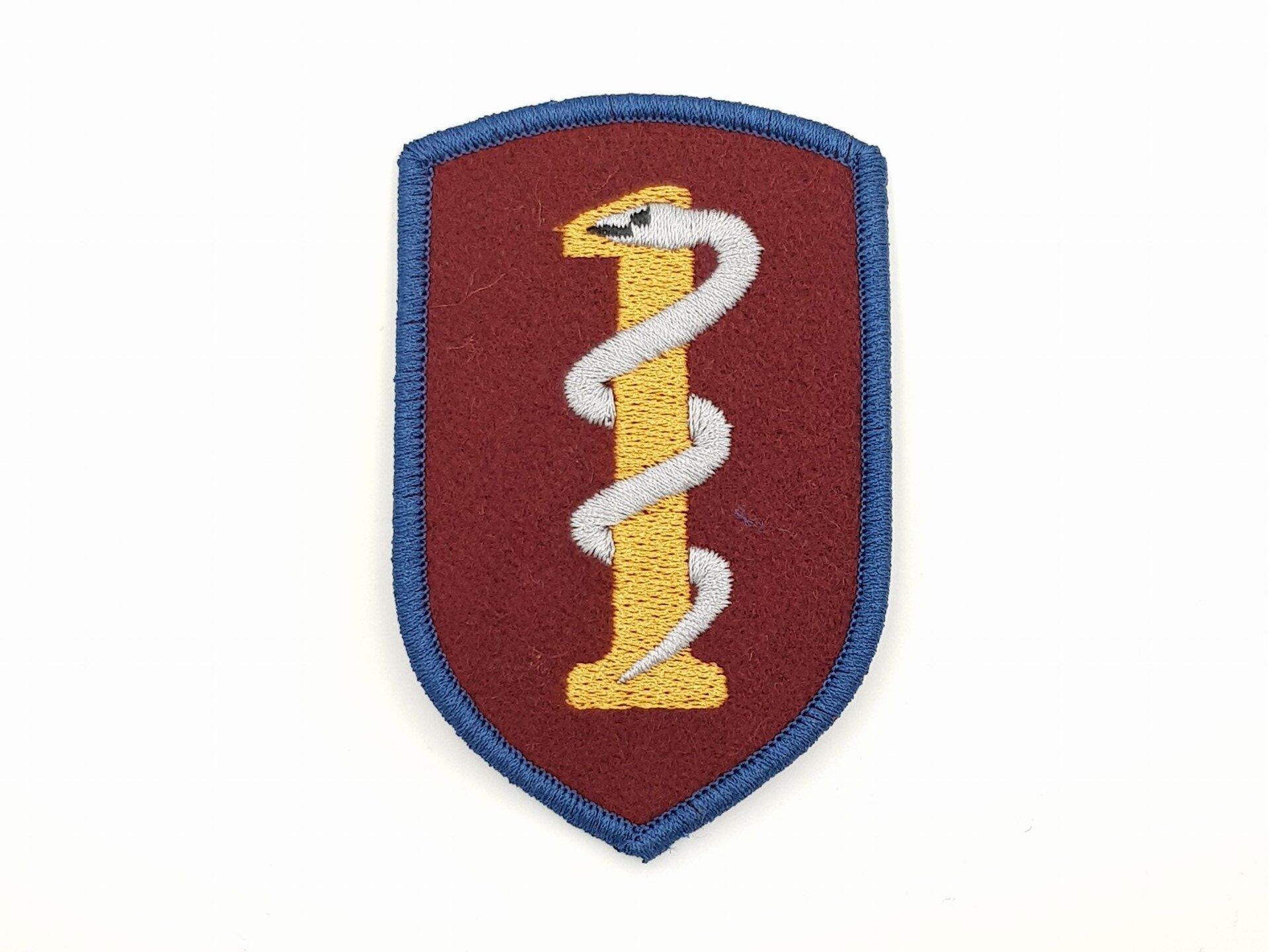 Oznaka rozpoznawcza — wyjściowa 1 Wojskowego Szpitalu Polowego. Wykonane metodą haftu komputerowego.
