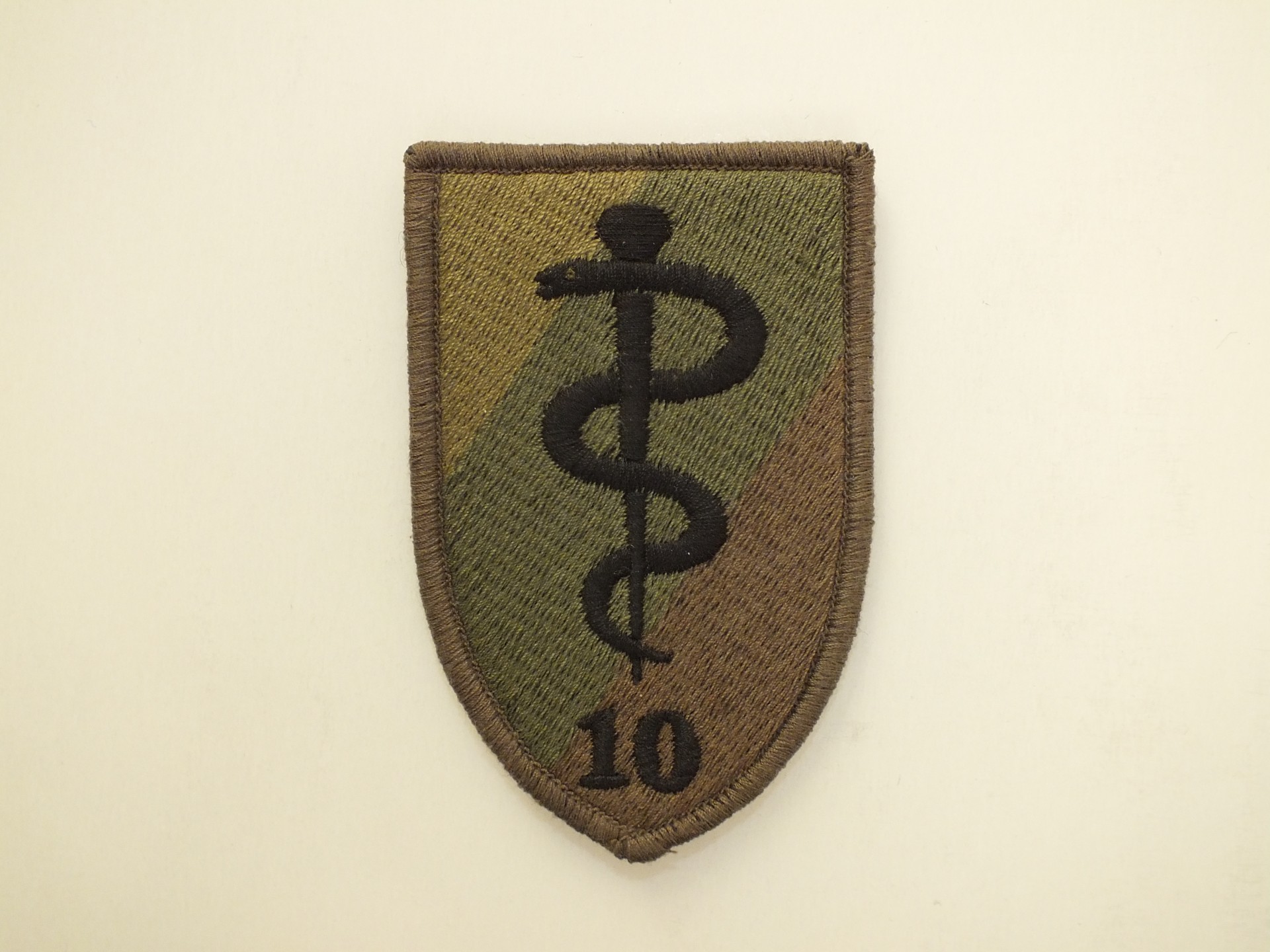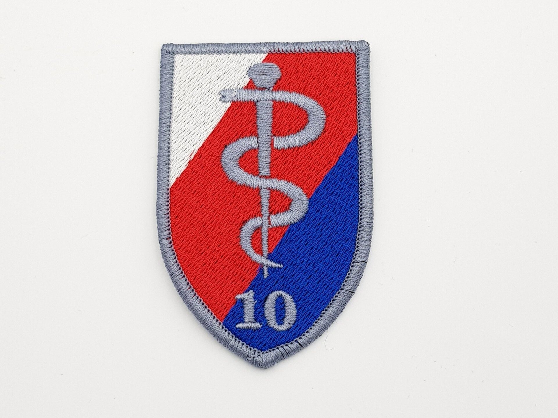Oznaka rozpoznawcza — wyjściowa 10 Wojskowego Szpitala Klinicznego. Wykonane metodą haftu komputerowego.