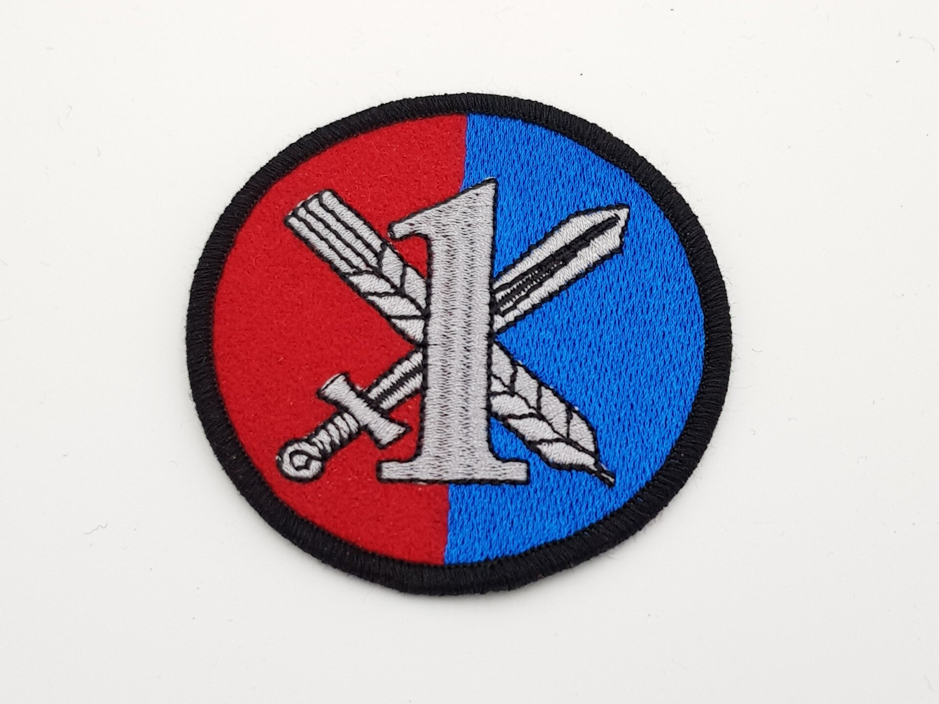 Oznaka rozpoznawcza — polowa 1 Batalionu Składowania Olsztyn. Wykonane metodą haftu komputerowego.