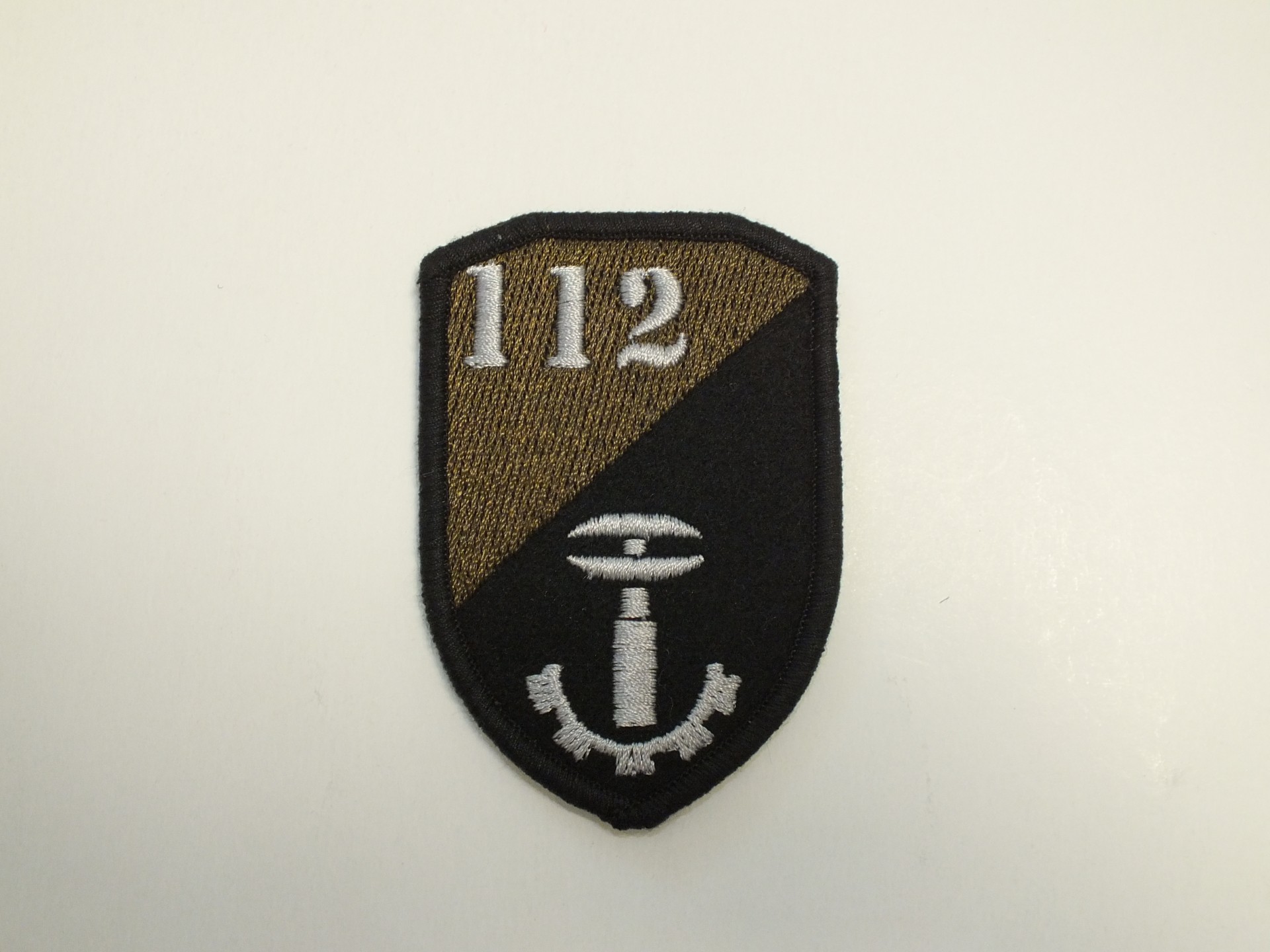 Oznaka rozpoznawcza — polowa 112 Batalionu Remontowego „Ziemi Ryńskiej”. Wykonane metodą haftu komputerowego.