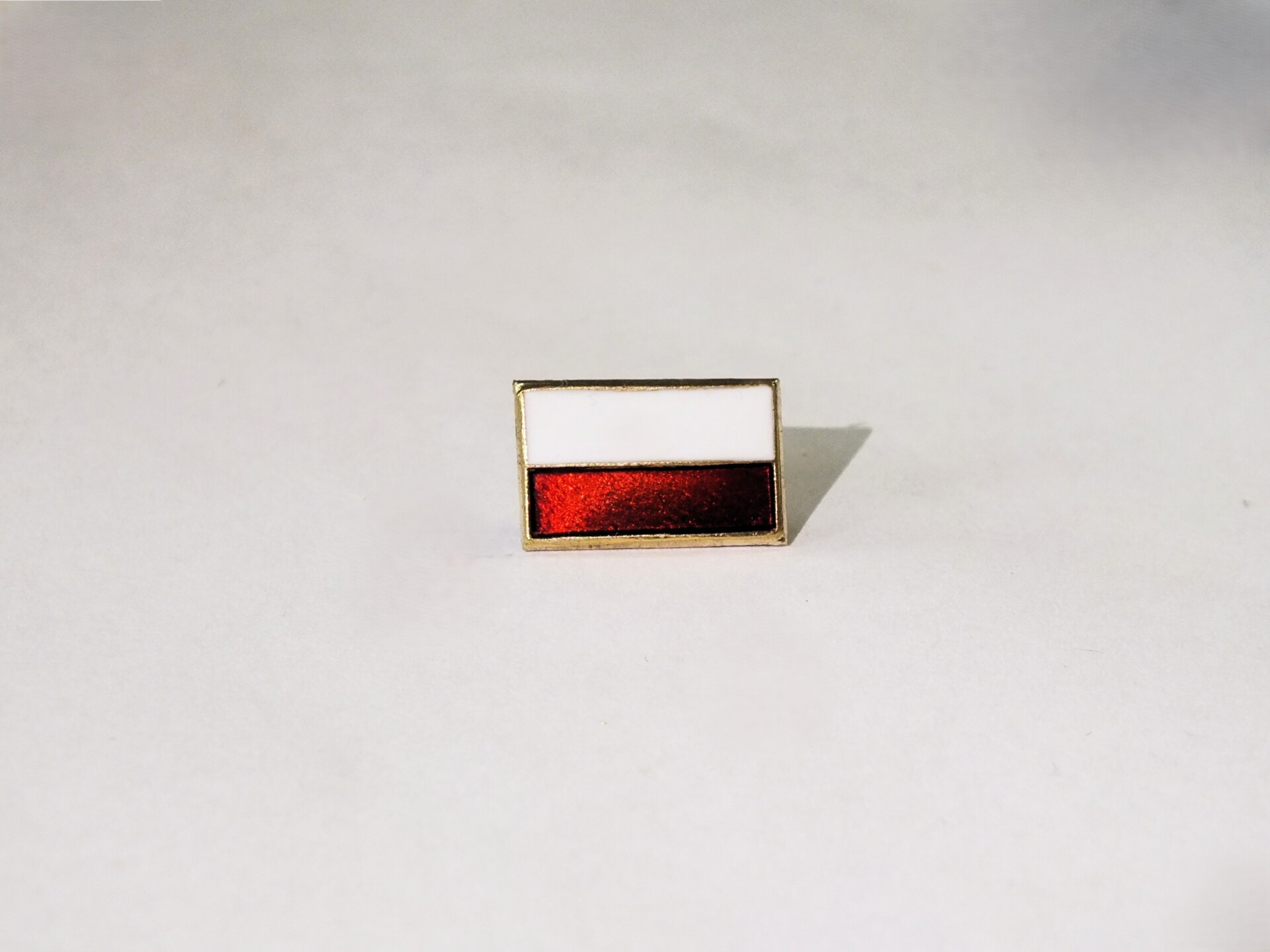 Flaga biało-czerwona przypinana na pin, metalowa. Wymiary: Wysokość: 8 mm Szerokość: 13 mm