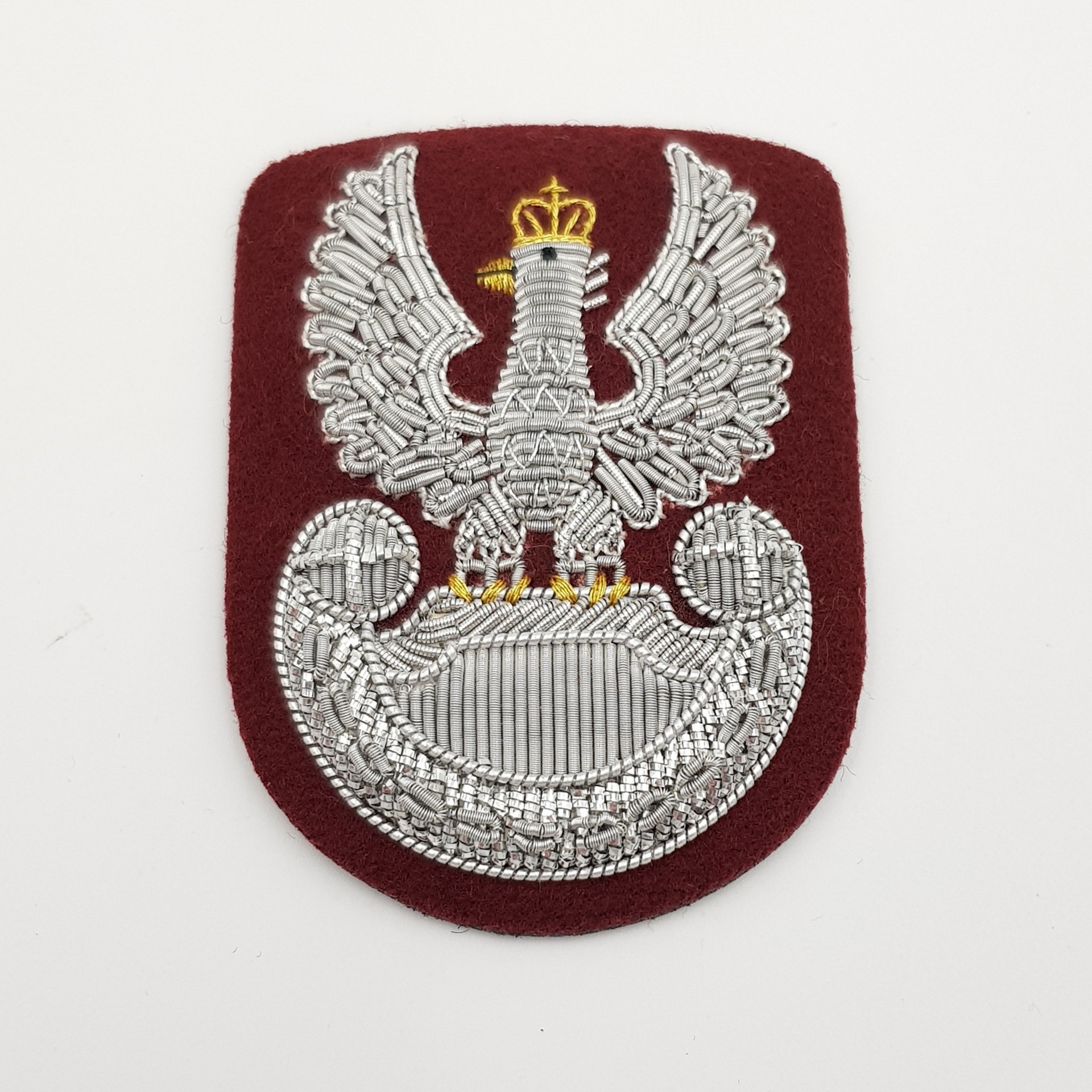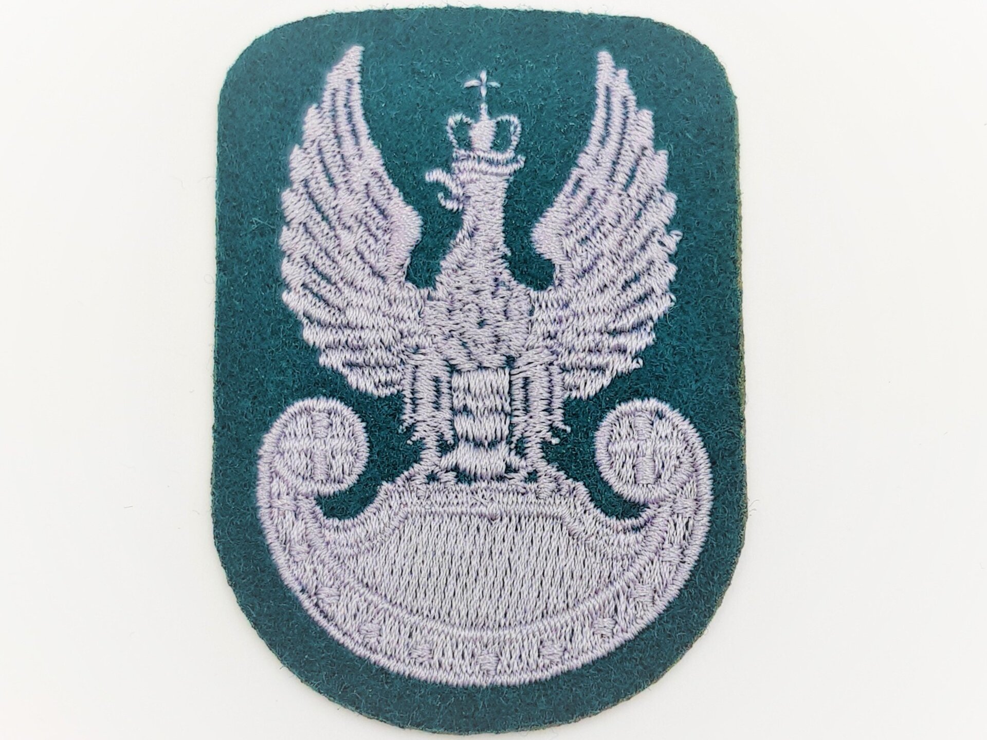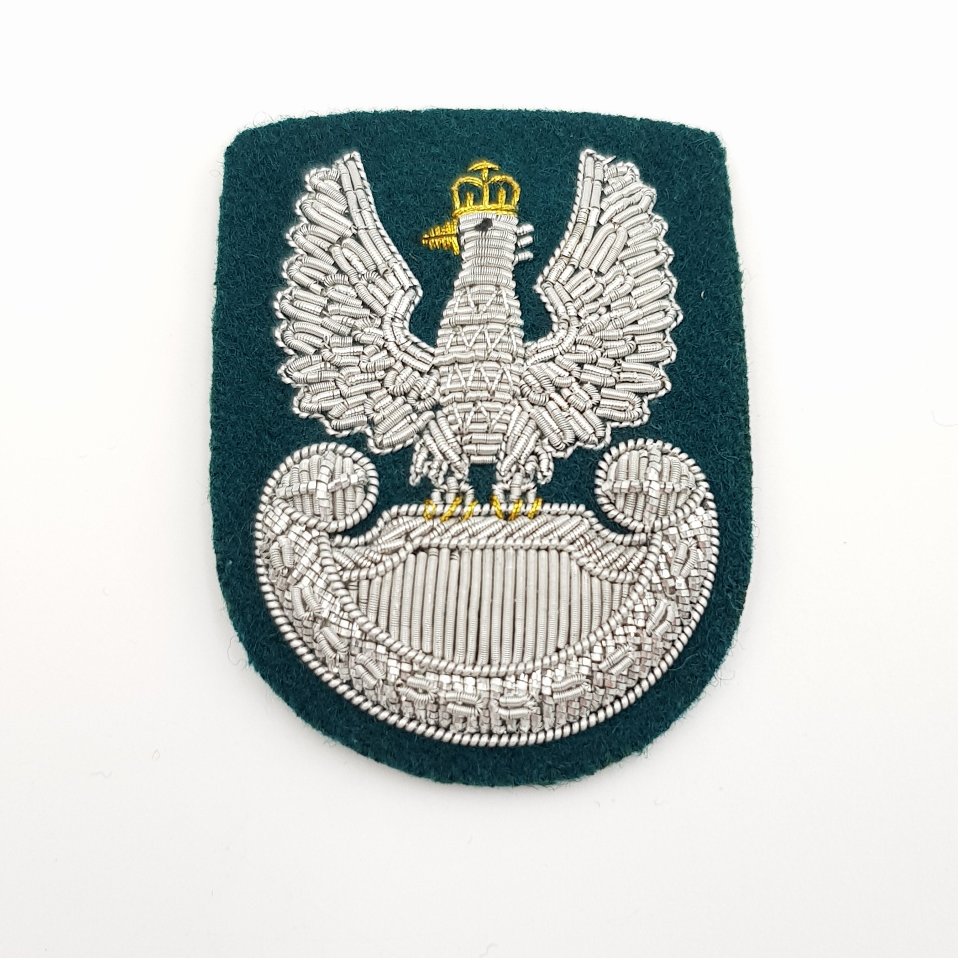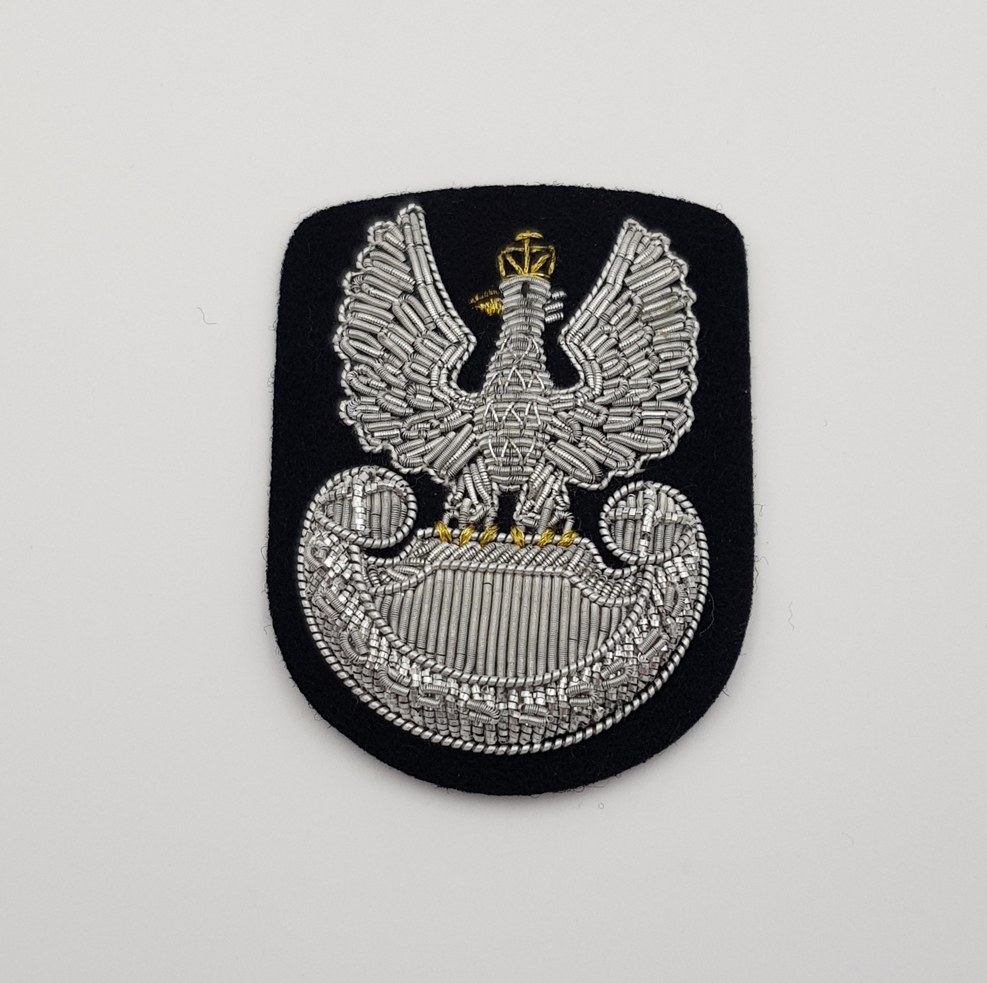 Orzeł haftowany do czapki wyjściowej Służby Więziennej. Wykonany metodą haftu komputerowego, mocowany do czapki za pomocą metalowych wąsów. Czas wysyłki: 14 dni
