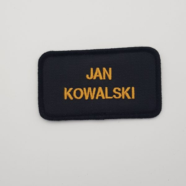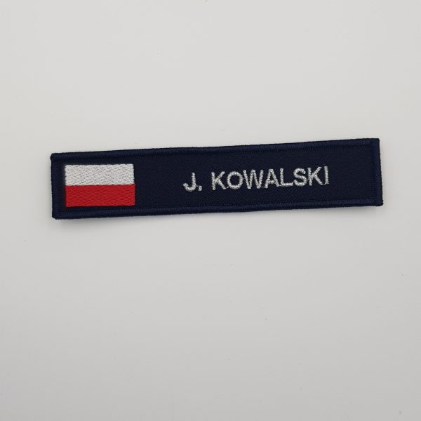 Identyfikator imienny do munduru polowego PSP Wykonany metodą haftu komputerowego. Podszyty rzepem. Wymiary: 10 × 2,5 cm NAZWISKO NALEŻY PODAĆ W UWAGACH DO ZAMÓWIENIA. Czas wysyłki: 14 dni